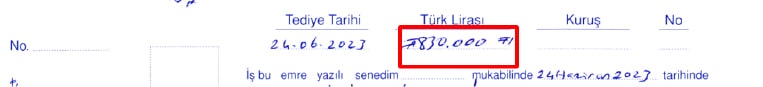 Yine meblağ kısmında “1.000.000 Türk Lirası” sonradan “USD” yapılmak suretiyle yazıyla bölümünü de “dolar” ibaresinin eklendiği tespit edilmiştir.