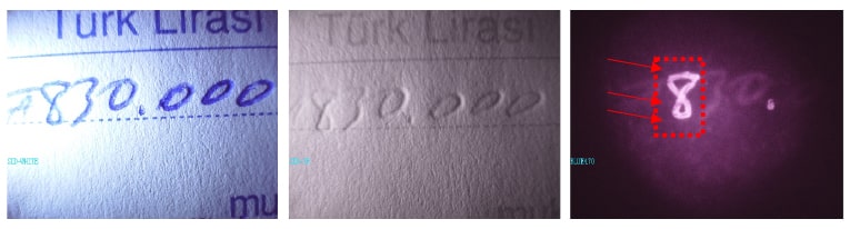Adli belge inceleme cihazlarıyla laboratuvar ortamında yapılan inceleme sonucunda;