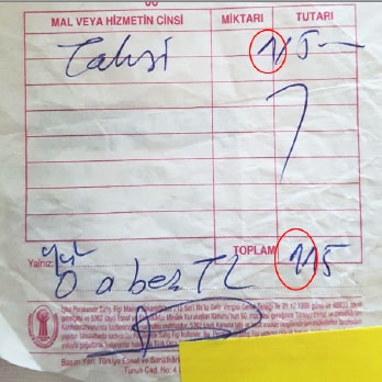 “Yüz” hecesi ile “On Beş TL” yazısını oluşturan kalem mürekkepleri farklı tonda röfle vermektedir. Bu oluşum da On Beş TL olan belgenin yazı ve rakamla “Yüz On Beş TL”ye dönüştürüldüğü tespit edilmiştir.