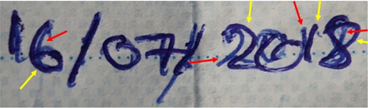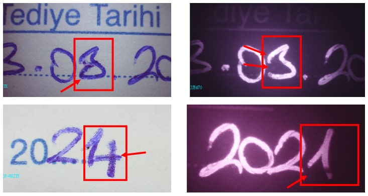 Ödeme yılını gösteren rakamların önce “2012” olarak yazıldığı, daha sonra farklı bir tükenmez kalemle “2018” haline dönüştürülmesi nedeniyle, önceden yazılan “2012” yılı ile sonradan yazılan “2018” yılı arasında presyon / baskı izi farklılıkları görüldüğü tespit edilmiştir.